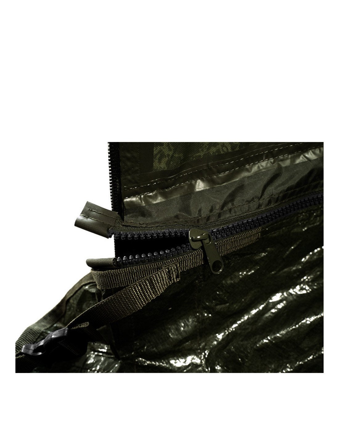 Das Biwak verfügt über eine Bodenplane, welche mit einem hochwertigen Reißverschluss um den gesamten Umfang des Biwaks befestigt wird.