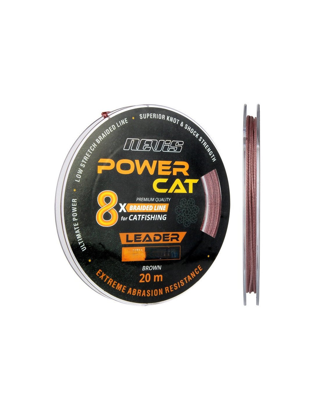 Nevis Powercat 1,20mm Braid Leader X8 20m Geflochtenes Vorfachmaterial Wels Leader Line Brown