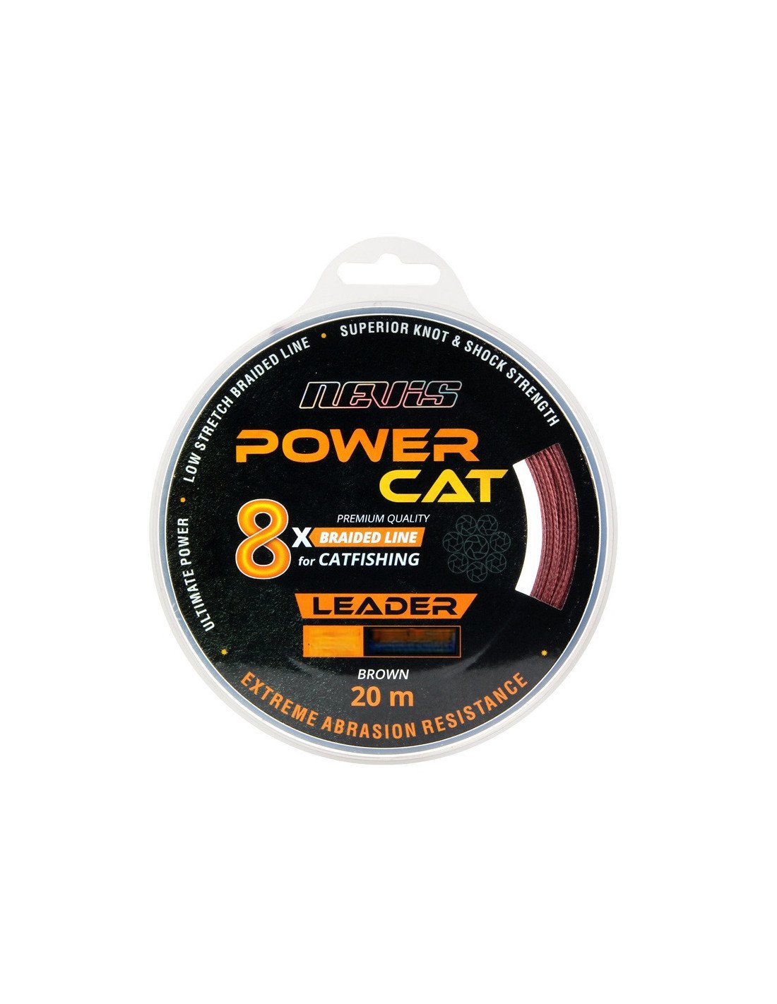 Nevis Powercat 1,20mm Braid Leader X8 20m Geflochtenes Vorfachmaterial Wels Leader Line Brown