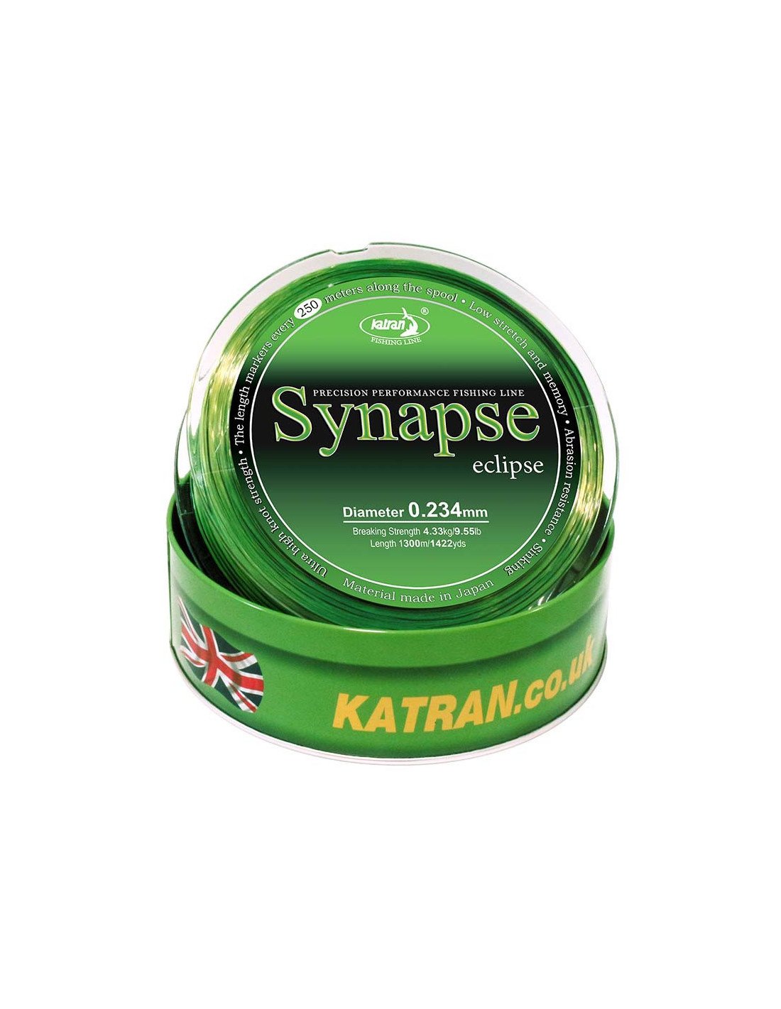 Katran Synapse Eclipse 0,234mm 4,33kg 1300m sinkende Fishing Line Angelschnur Neon + Black Edition