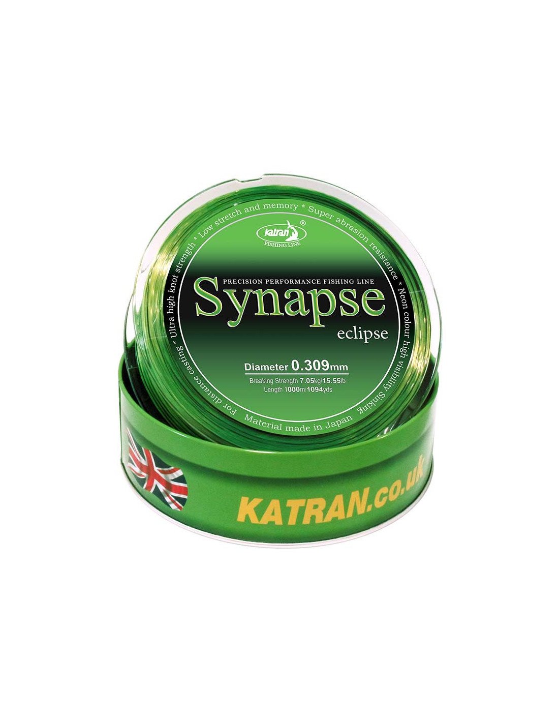 Katran Synapse Eclipse 0,309mm 7,05kg 1000m sinkende Fishing Line Angelschnur Neon + Black Edition