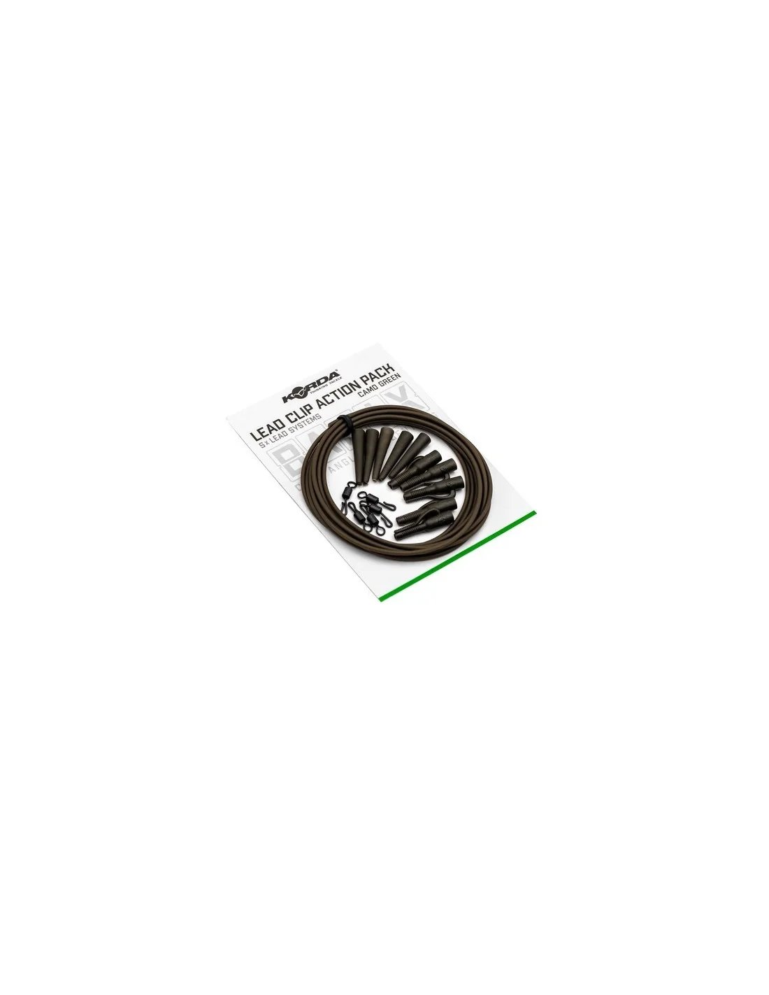 Korda BASIX Lead Clip Action Pack – komplettes Set, verwicklungsfrei, einfache Montage, tarngrün, ideal für effektives Karpfenangeln in allen Situationen.