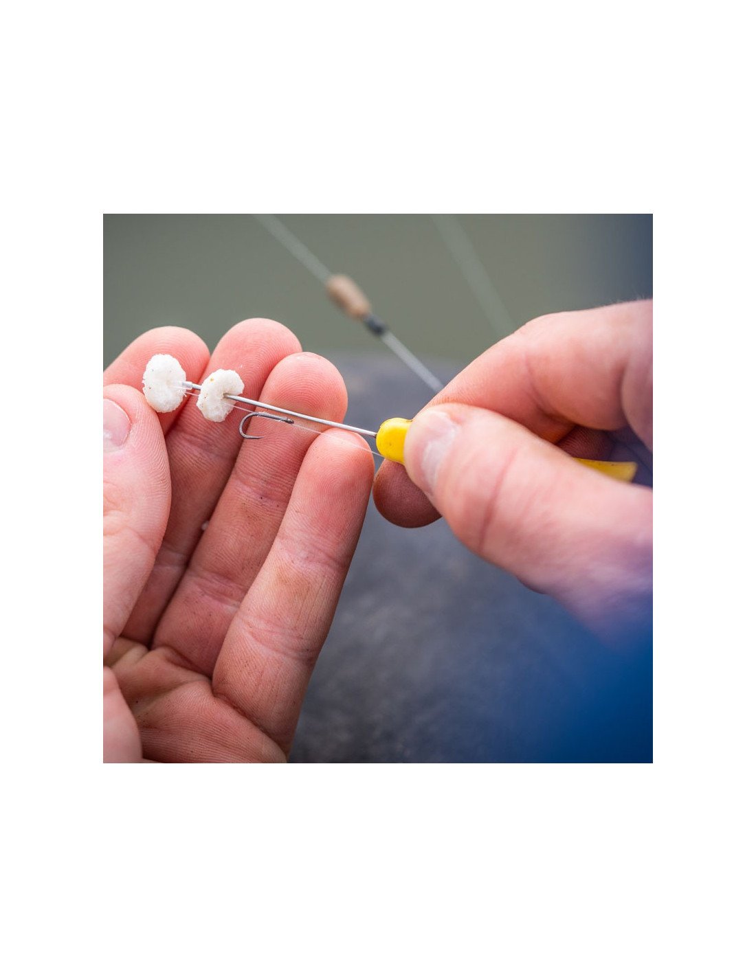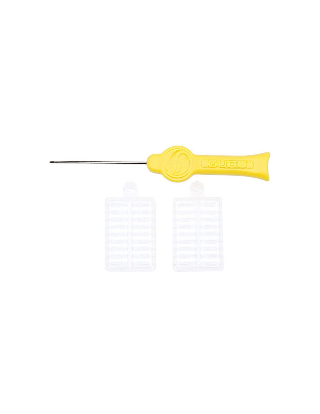 Verwende das Speedstops with Needle Set, von Guru, um gebohrte Pellets, weiche Pellets, Boilies, Würmer usw. auf deinem Hair-Rig (nicht inkludiert) rasch zu montieren.