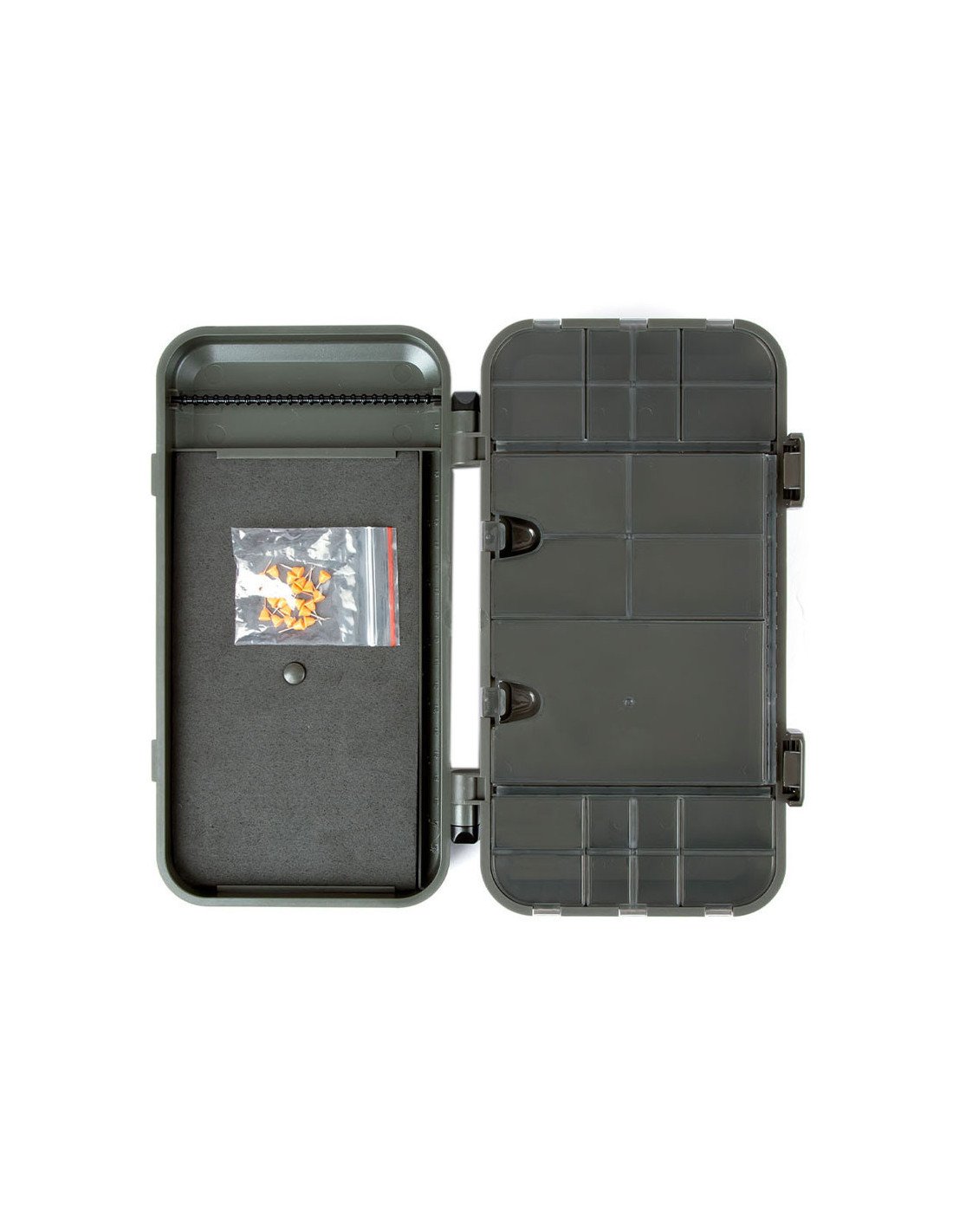 Die Compact Rig Box, aus dem Hause Sonik, gehört zur LOKBOX Serie und eignet sich ideal für Angler, die ihre vorgebundenen Rigs und Rig Komponenten gerne griffbereit haben.