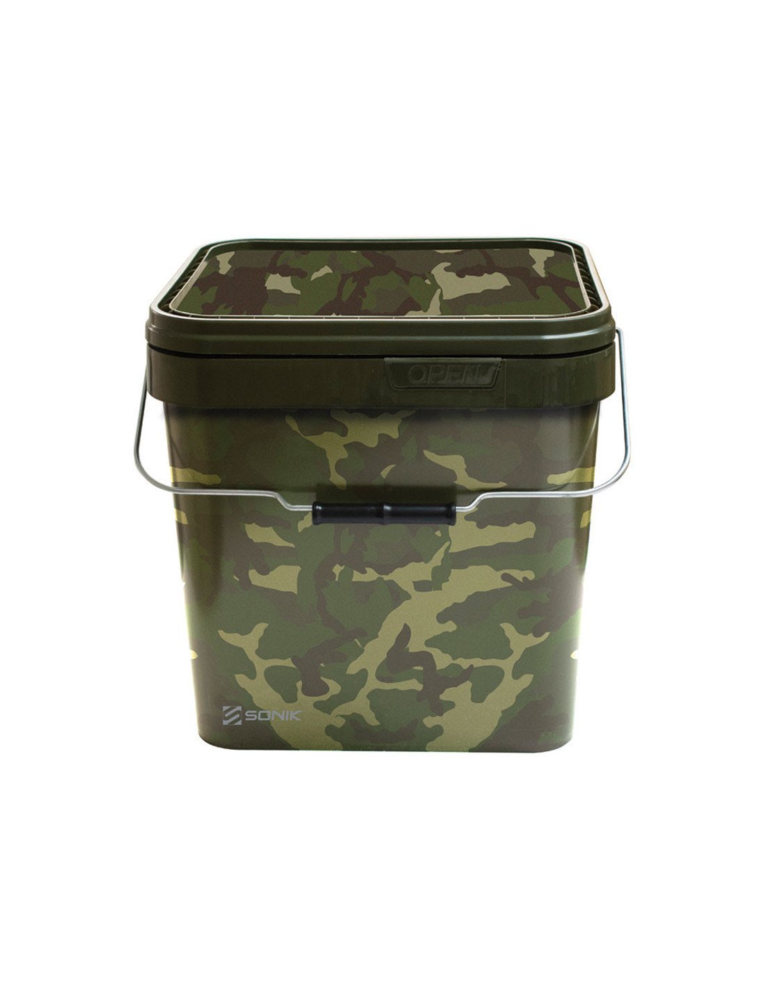 Nutze den viereckigen, robusten Camo Square Bucket, von Sonik, mit Metallgriff und luftdichtem Deckel, für die Aufbewahrung deiner Futtermischungen.
