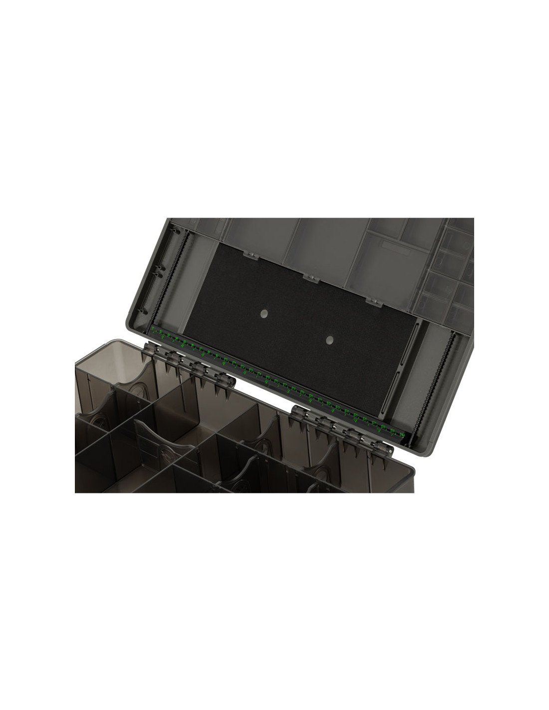 Das geräumige Hauptfach der Tackle Box Large Collection verfügt über verstellbare Trennwände, die du so anpassen kannst, dass dein Tackle perfekt reinpasst. Insgesamt stehen dir hierfür 6 kleine, 1 mittlere und 2 große herausnehmbare Trennwände zur Verfügung. Ihre festen Wände hingegen ermöglichen es dir Hooklink-Spulen, Bait Floss, Leadcore, Ködernadeln, Scheren usw. aufzubewahren.