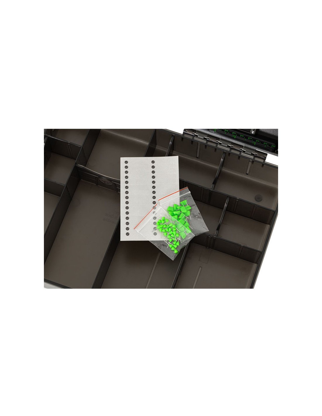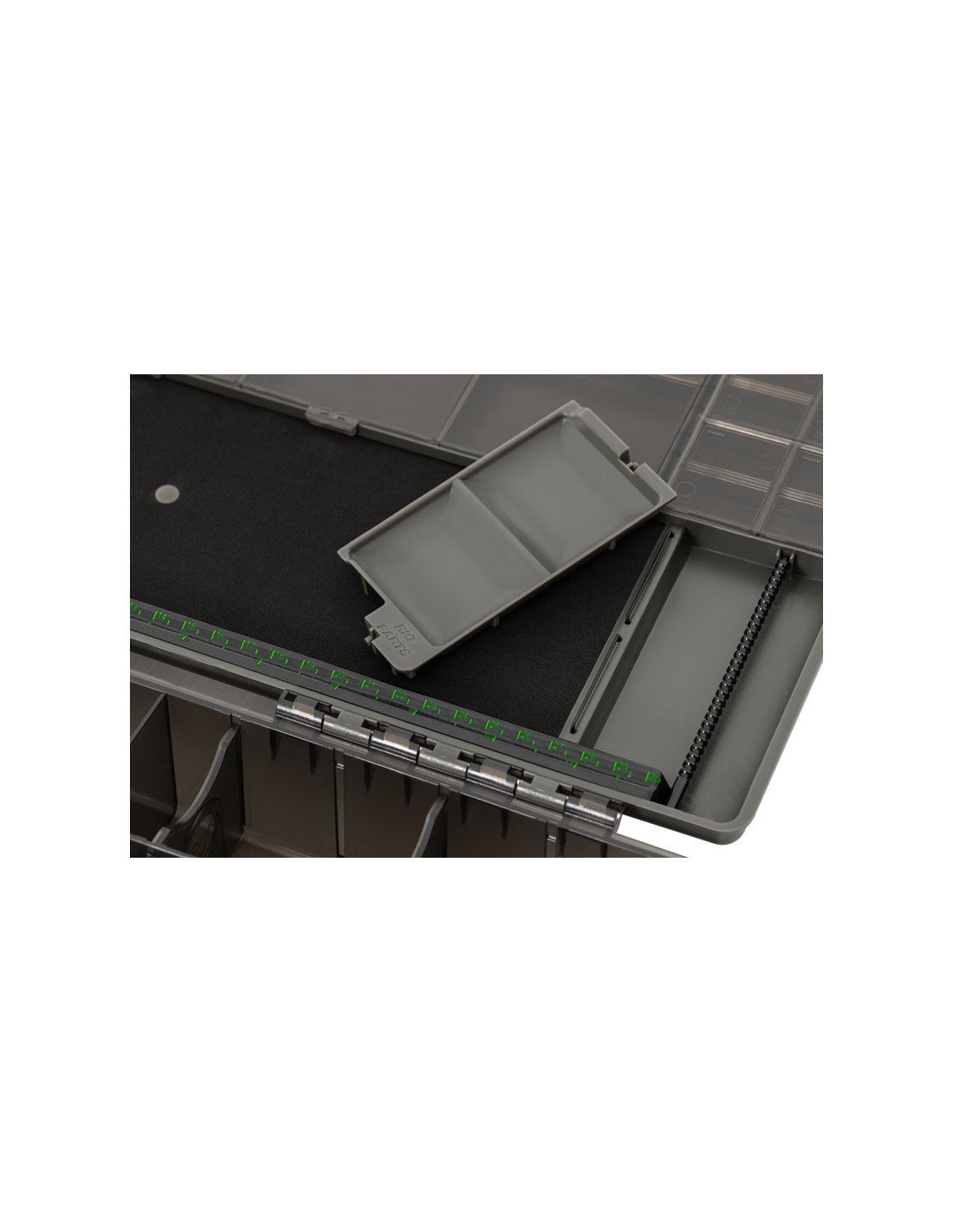 Im Deckel dieser Box befinden sich 25 einzelne Fächer mit transparenten Klappdeckeln, wo du deine Kleinteile, wie beispielsweise Wirbel, Rig-Ringe, Schrumpfschläuche, Kicker usw., sicher verstauen kannst und mit einem Blick siehst, was in den jeweiligen Fächern, drinnen ist.