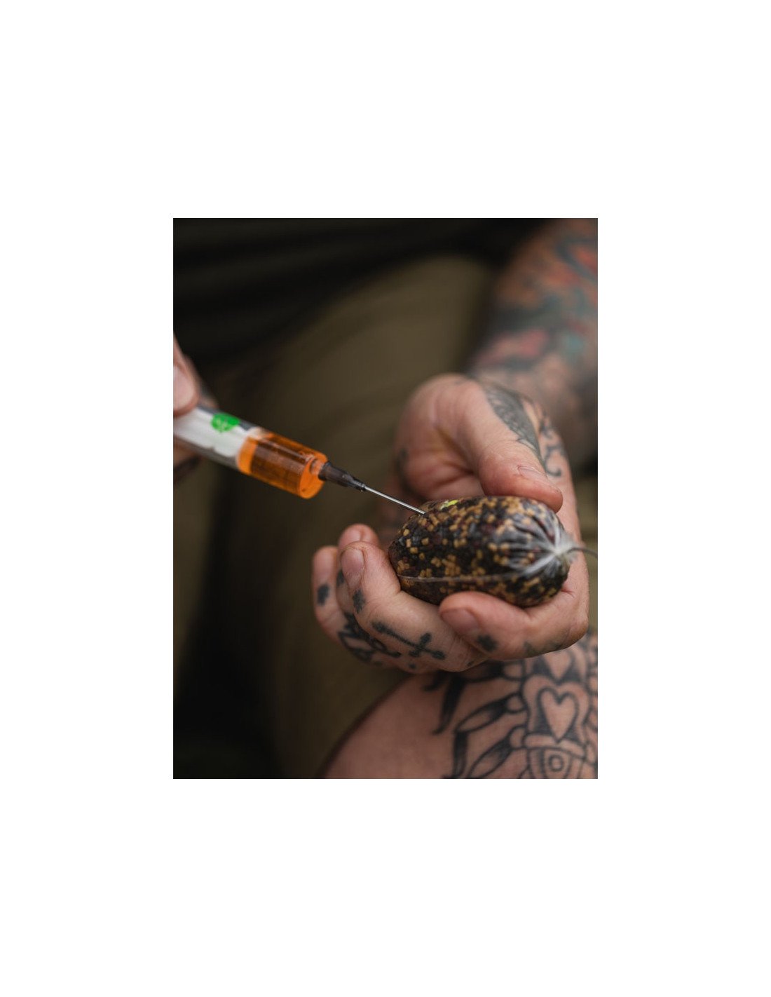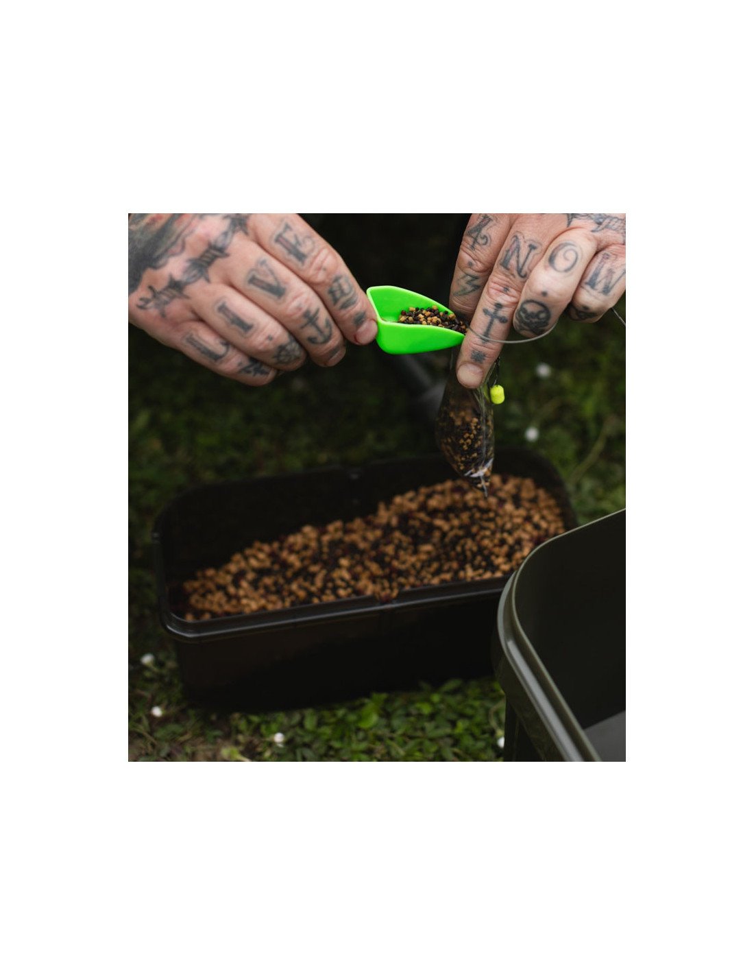 Zudem sind auch eine Spritze, zum Hinzufügen von Flüssigkeiten (nicht inkludiert) in die PVA Beuteln, eine grüne Köderschaufel, zum Befüllen der Beutel, sowie insgesamt 45 PVA-Bags, in 2 verschiedenen Größen (Medium & X-Small), im Lieferumfang enthalten.