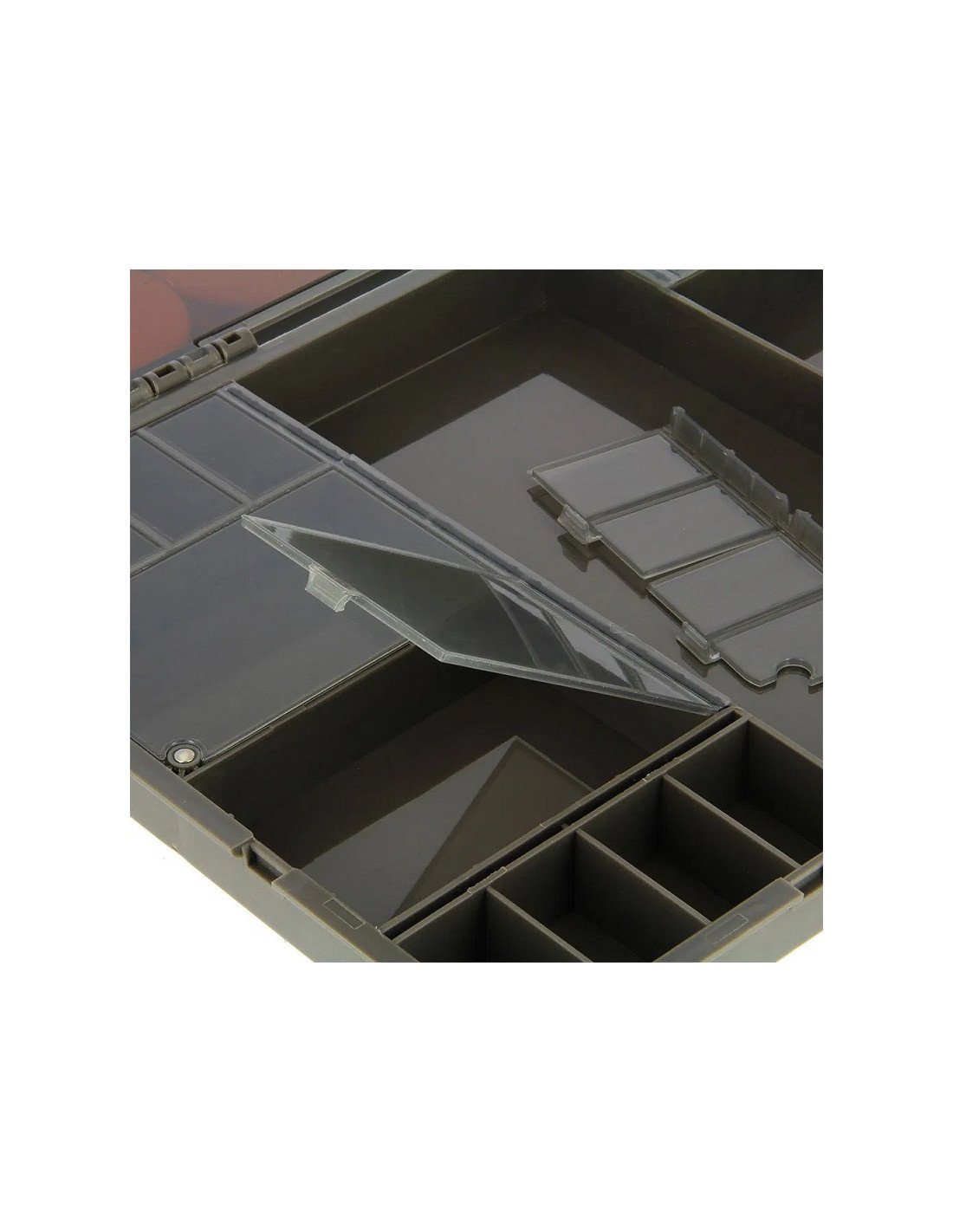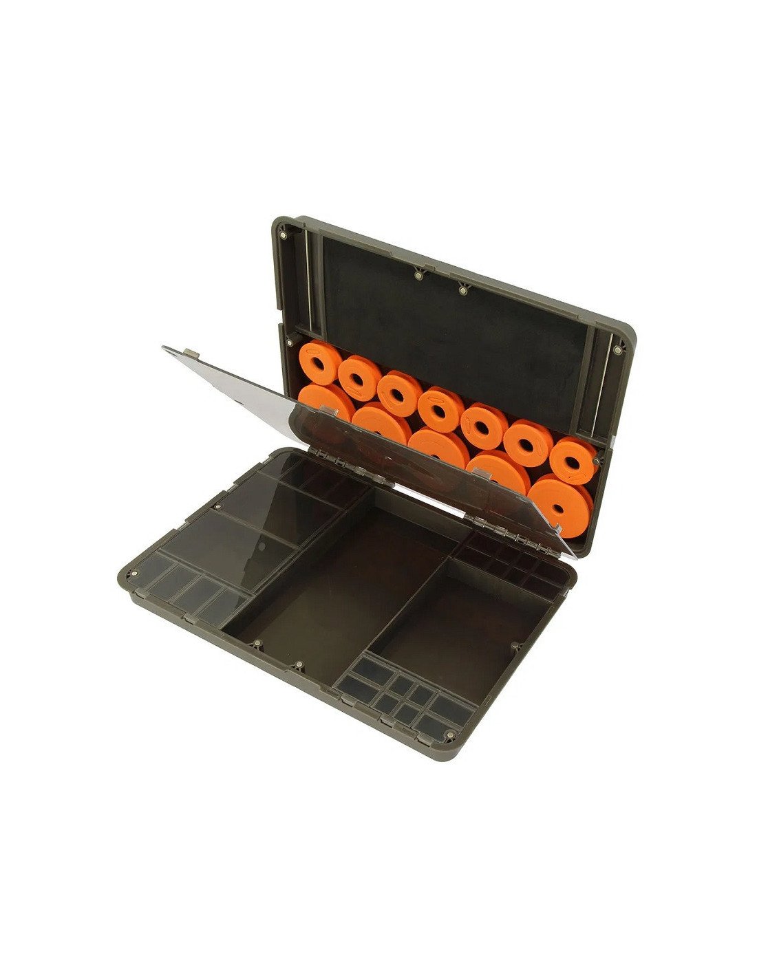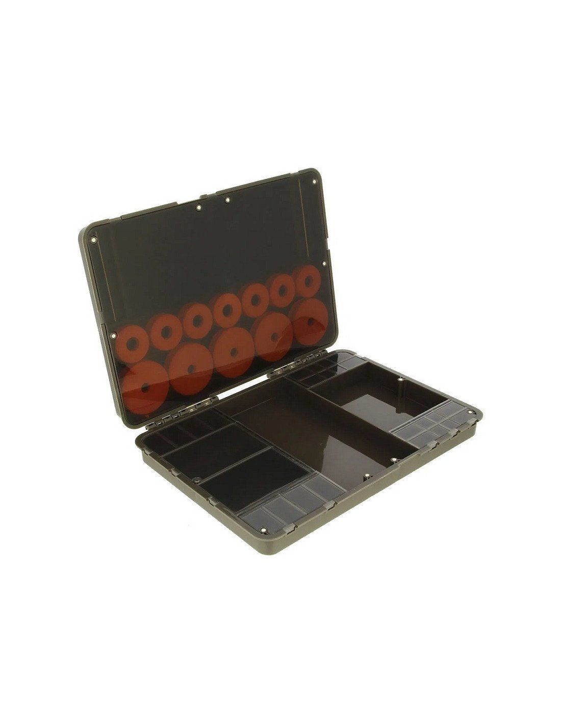 Mit den Maßen 34,5cm x 24cm x 5,5 cm bietet sie ausreichend Platz für Rigs, Terminal Tackle und sogar größere Werkzeuge wie Scheren oder Ködernadeln.