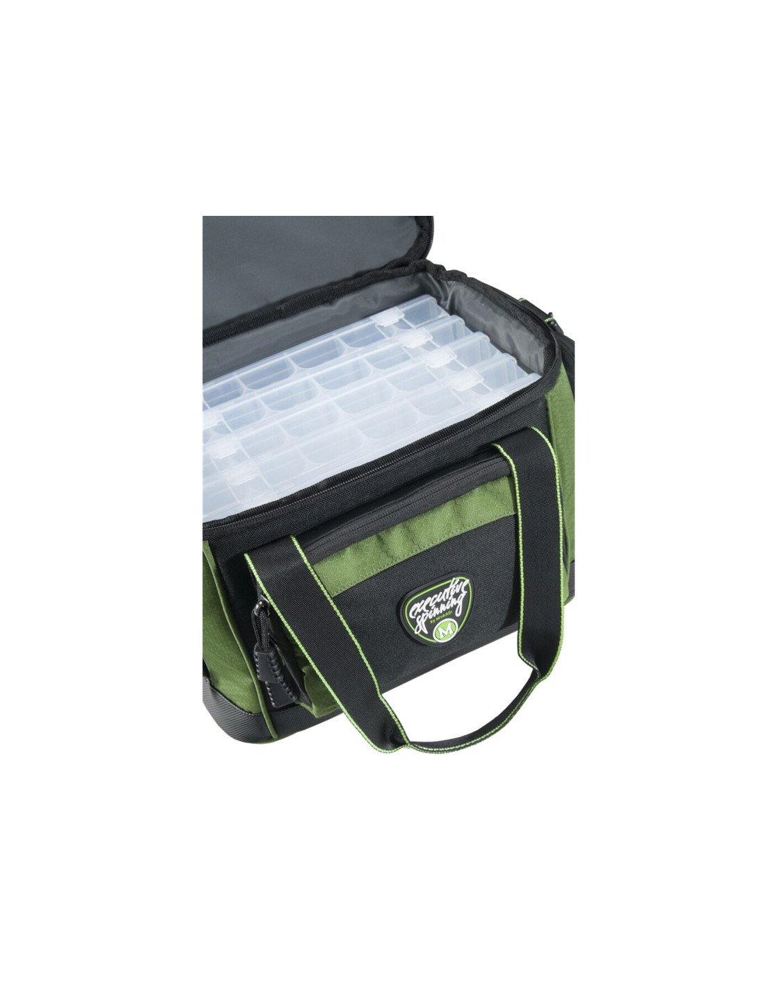 Die Tasche ist in dunklem Grün mit schwarzen Akzenten gehalten, robust verarbeitet und langlebig. Die Mivardi Spinnköder-Tasche groß überzeugt durch praktisches Design, große Kapazität und einfache Handhabung – ein unverzichtbares Zubehör für jeden Spinnangler, der auf Organisation, Flexibilität und schnellen Zugriff Wert legt.