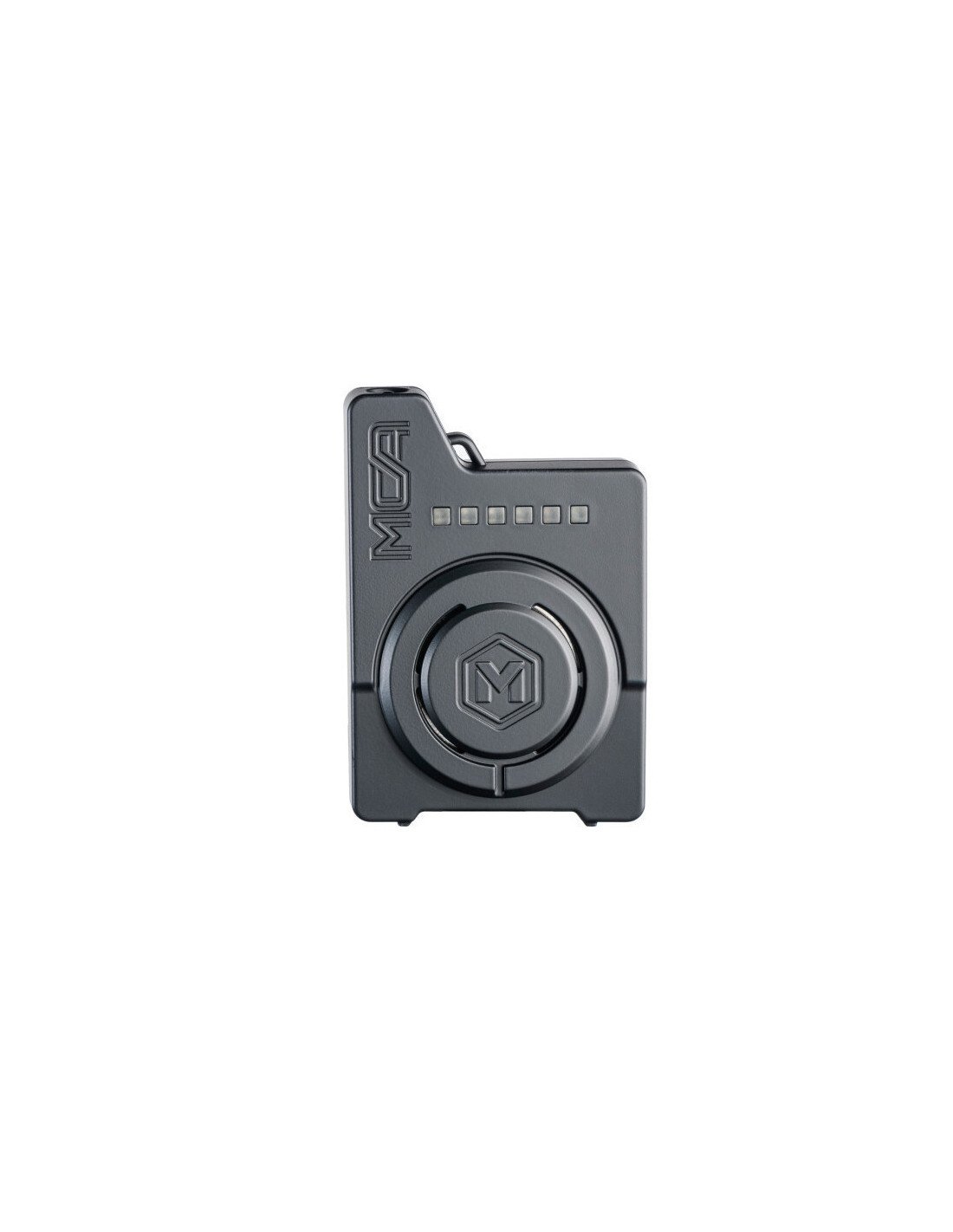Der Receiver ist besonders kompakt (ca. 5,5cm x 3,2cm x 8,2 cm) und passt bequem in jede Tasche. Er kann mit bis zu 6 Bissanzeigern gekoppelt werden und signalisiert Bisse über Ton, Licht oder Vibration.
