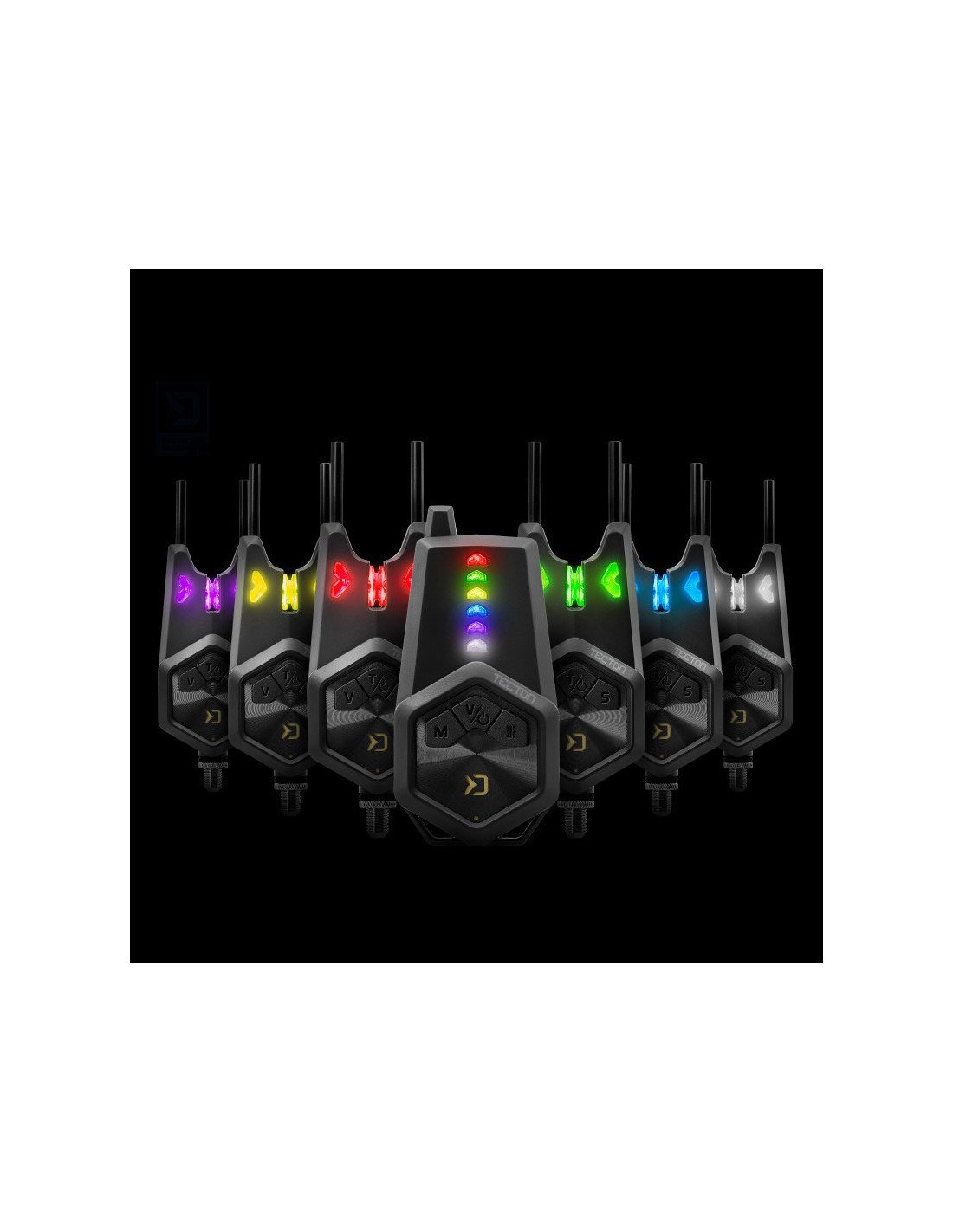 Die Bissanzeiger verfügen über die abnehmbaren snag gears, die dafür sorgen, dass die Rute bei den starken Bissen nicht aus dem Bissanzeiger "herausfliegen" kann. Das 2+1-Basisset enthält einen roten und einen blauen Bissanzeiger zusammen mit dem Empfänger, aber im Falle von TECTON ist es möglich, bis zu vier zusätzliche Farben (gelb, grün, lila, weiß) zu kaufen. Damit haben Sie die Möglichkeit, die Bissanzeiger mit der von Ihnen bevorzugten Diodenfarbe für das Set zu erwerben. Dies ist jedoch nicht der einzige Vorteil der breiten Farbpalette. Dem aufmerksamen Auge wird nicht entgehen, dass sich auf dem Empfänger bis zu sechs Dioden befinden, so dass Sie sechs verschiedene TECTON-Bissnazeiger an einem Empfänger koppeln können, wobei Sie die unterschiedlichen Farben der Bissanzeiger sicherlich schätzen werden.