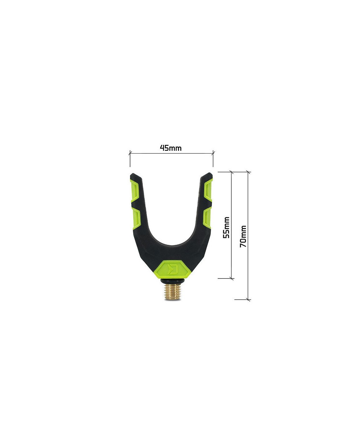 U-förmiger Hinterrutenhalter, gestaltet in den Farben der innovativen Delphin Reaxe Feeder-Serie. Der Halter zeichnet sich durch eine hervorragende Verarbeitung aus und besticht durch seine Robustheit und Langlebigkeit. Die speziell entwickelte Form ermöglicht die Aufnahme von den Ruten mit den unterschiedlichen Griffdurchmessern. Die Oberfläche ist mit einem gummierten Material beschichtet, das die Rutenoberfläche besonders schont und vor Beschädigungen schützt. Der Halter ist aus den langlebigsten Materialien gefertigt, so dass er nicht leicht beschädigt oder zerkratzt werden kann. Das Universalgewinde ermöglicht die Befestigung an allen üblichen Armen, Ständern und Rutenhaltern. Auf dem Gewindeteil befindet sich eine Gummischeibe, die ein Verdrehen des Halters verhindert.