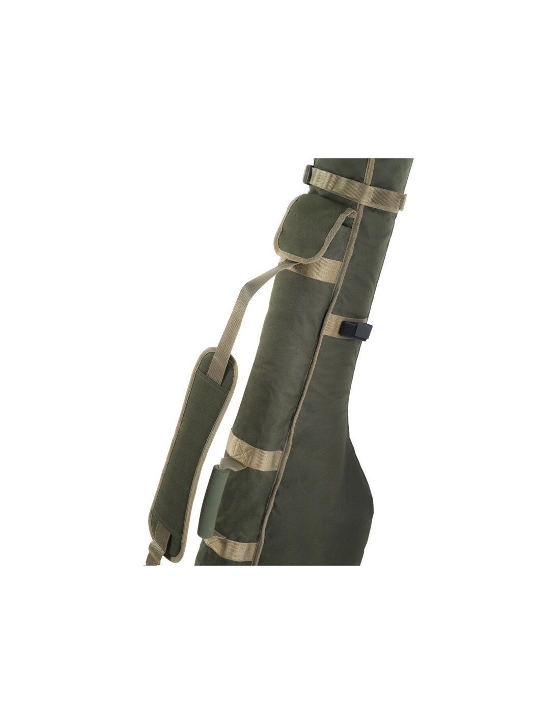 Zusätzlich zu den geräumigen Hauptfächern verfügt die Rutentasche über praktische Außentaschen, die genügend Stauraum für Kescher, Schirm, Banksticks oder weiteres Zubehör bieten. So bleibt alles übersichtlich organisiert und schnell griffbereit. Besonders praktisch sind der gepolsterte Tragegriff und der komfortable Schultertragegurt, die ein ergonomisches Tragen ermöglichen und die Tasche auch bei längeren Wegen angenehm handhabbar machen.