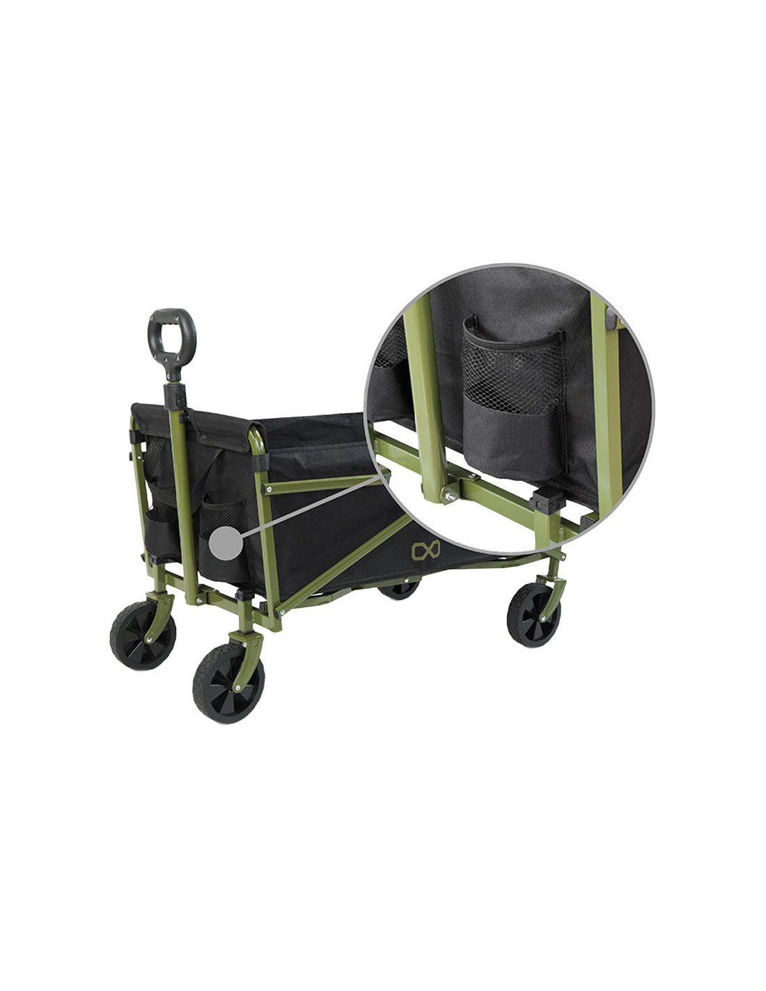 Sein Staufach ist aus einem extra starken, versteiften Material gefertigt, das auch schwere Lasten tragen kann. Überdies ist es mit Klettverschlüssen an der Metallkonstruktion befestigt, so dass du es leicht abnehmen kannst, um es zu waschen oder zu trocknen.