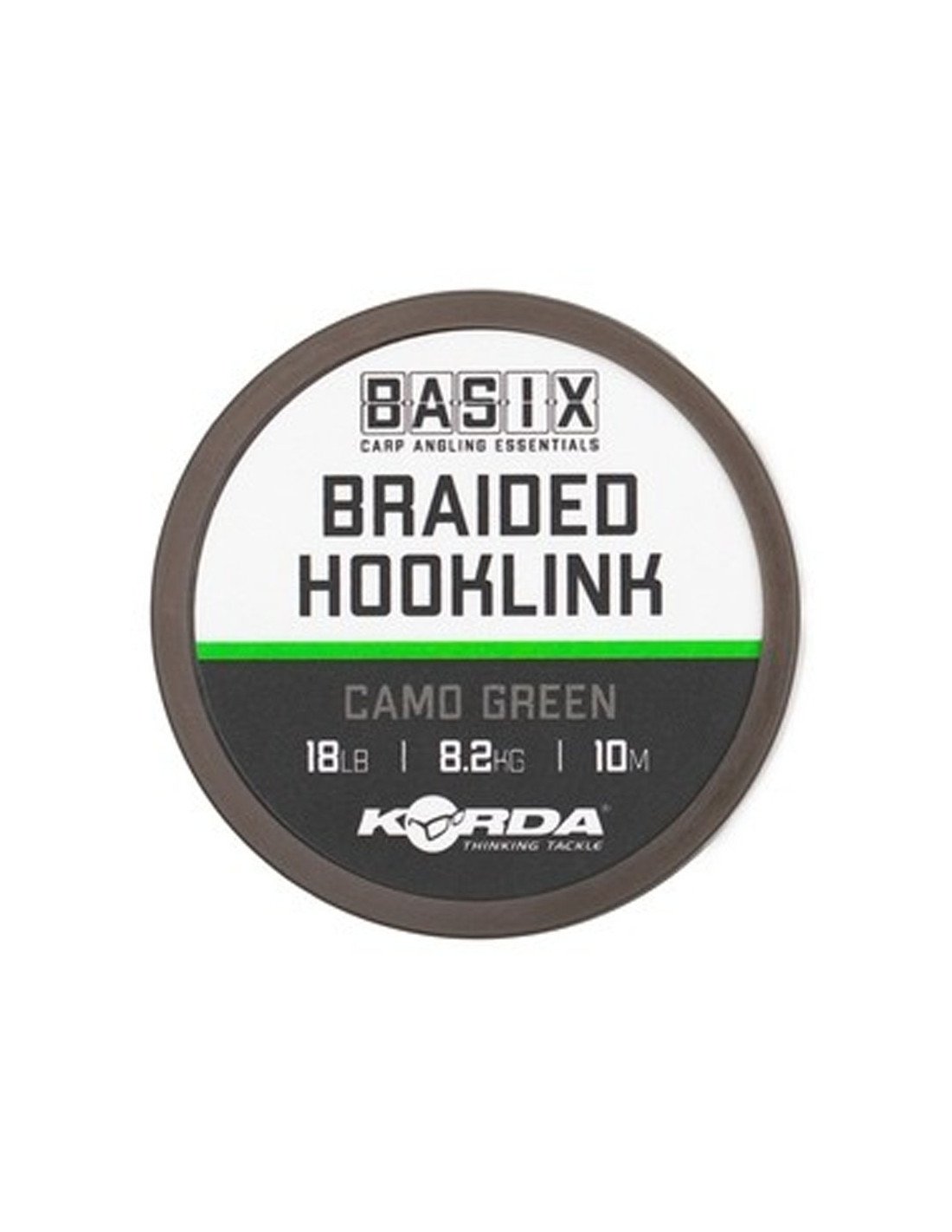 Beim Basix Braided Hooklink, aus dem Hause Korda, handelt es sich um ein geflochtenes Vorfachmaterial, das stark, abriebfest, geschmeidig und knotenfest ist.