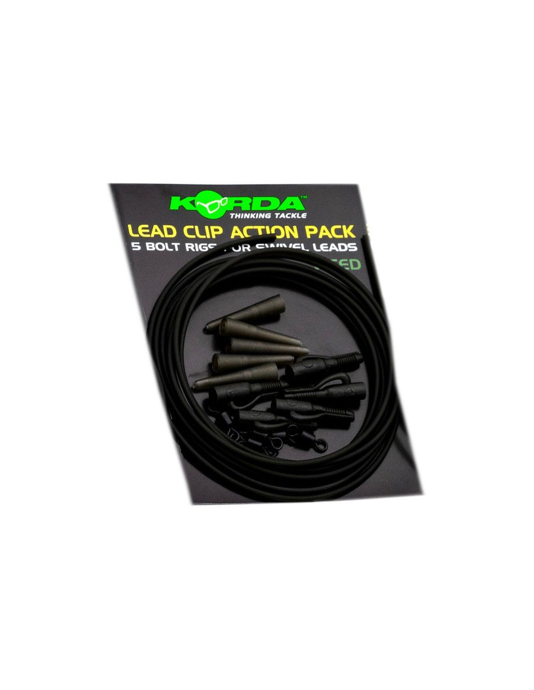 Das Lead Clip Action Pack, aus dem Hause Korda, enthält alle Komponenten, die für den Bau sicherer Lead Clip-Systeme, die beim Angeln in verkrauteten oder hindernisreichen Gewässern unverzichtbar sind, erforderlich sind.