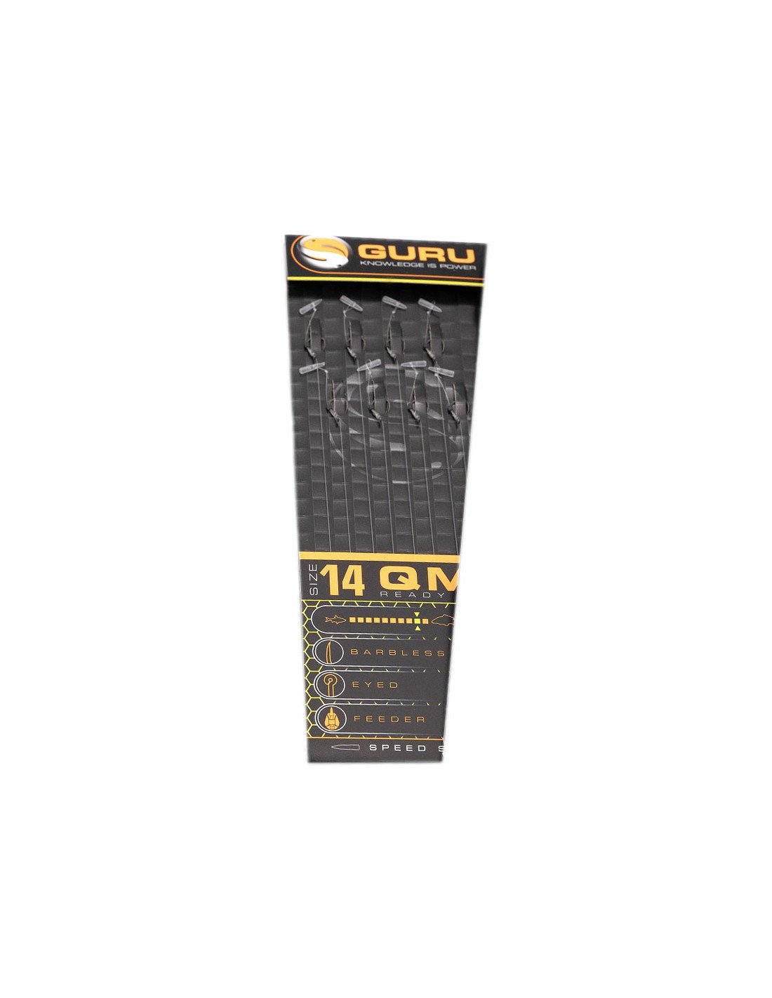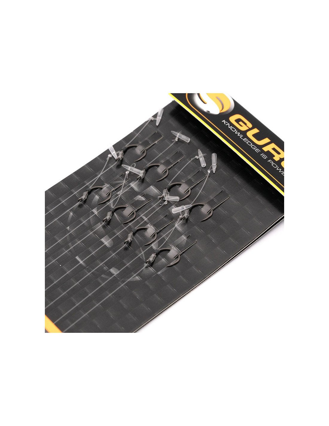 Ausgestattet ist dieses fertige Vorfach mit einem QM1-Haken mit einer einzigartigen, stark geschwungenen Form, einem kurzen Schenkel und einer immens scharfen Hakenspitze, die für einen exzellenten Hakenhalt sorgt und Fischverluste extrem reduziert. Zudem verfügt der Haken über eine PTFE-Beschichtung, die seine Haltbarkeit, Schärfe und Langlebigkeit deutlich verbessert. Gebunden ist dieser Angelhaken an die bewährte N-Gauge Schnur, ebenfalls von Guru.