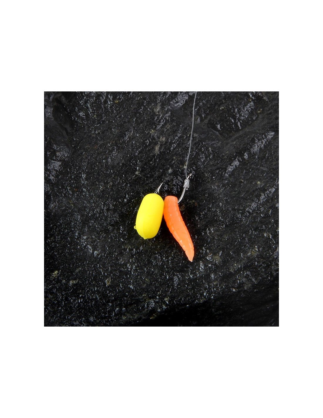 Der messerscharfe, starke Karpfenhaken bricht und verbiegt sich bei hoher Belastung nicht. Somit handelt es sich hierbei um die effektivste Hakenform, kombiniert mit einer strapazierfähigen Schnur, die sich unter äußerst schwierigen Angelbedingungen bewährt.