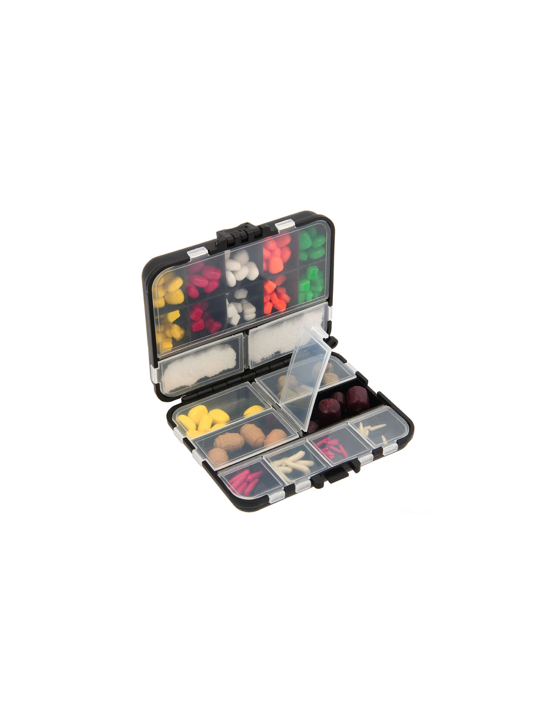 The Clone Baits Set, from NGT, are many different artificial lures, such as corn, floating bread, pellets, tiger nuts, maggots and breakfast meat.