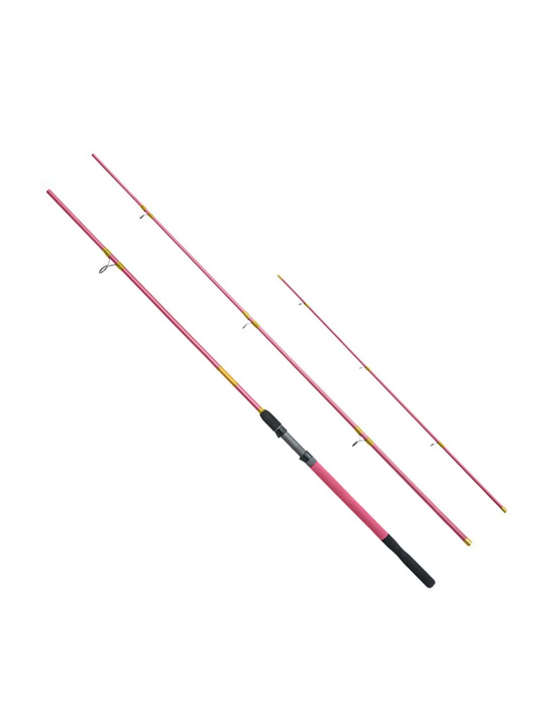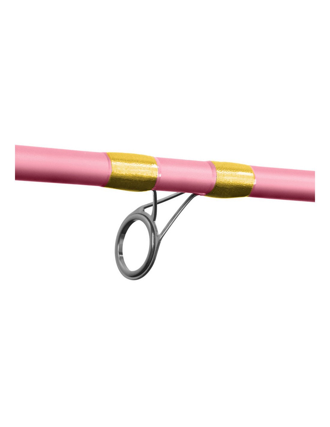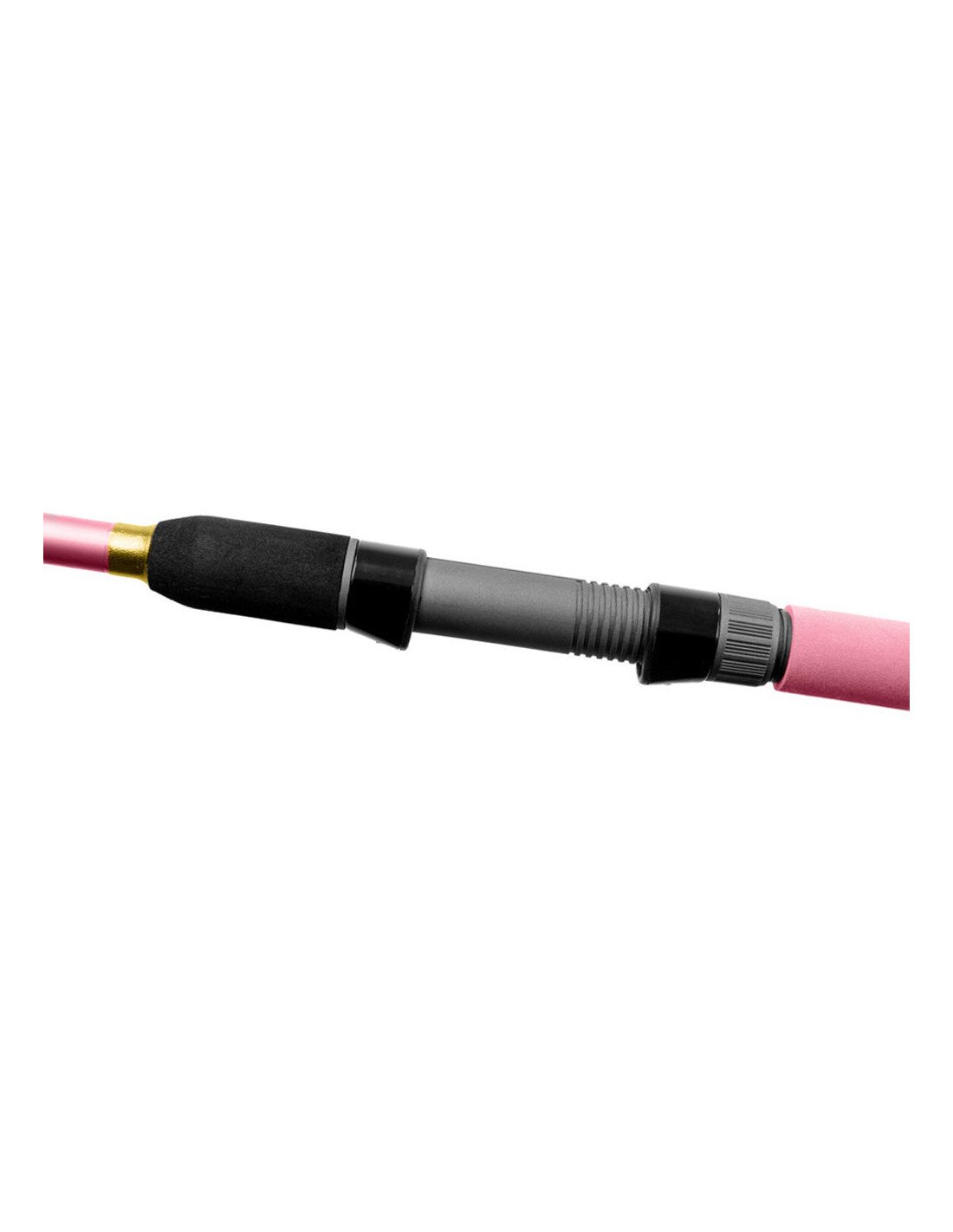 At your hot spot you are guaranteed to stand out from the other anglers with this rod. Because a pink rod with golden and black elements is very rarely seen.