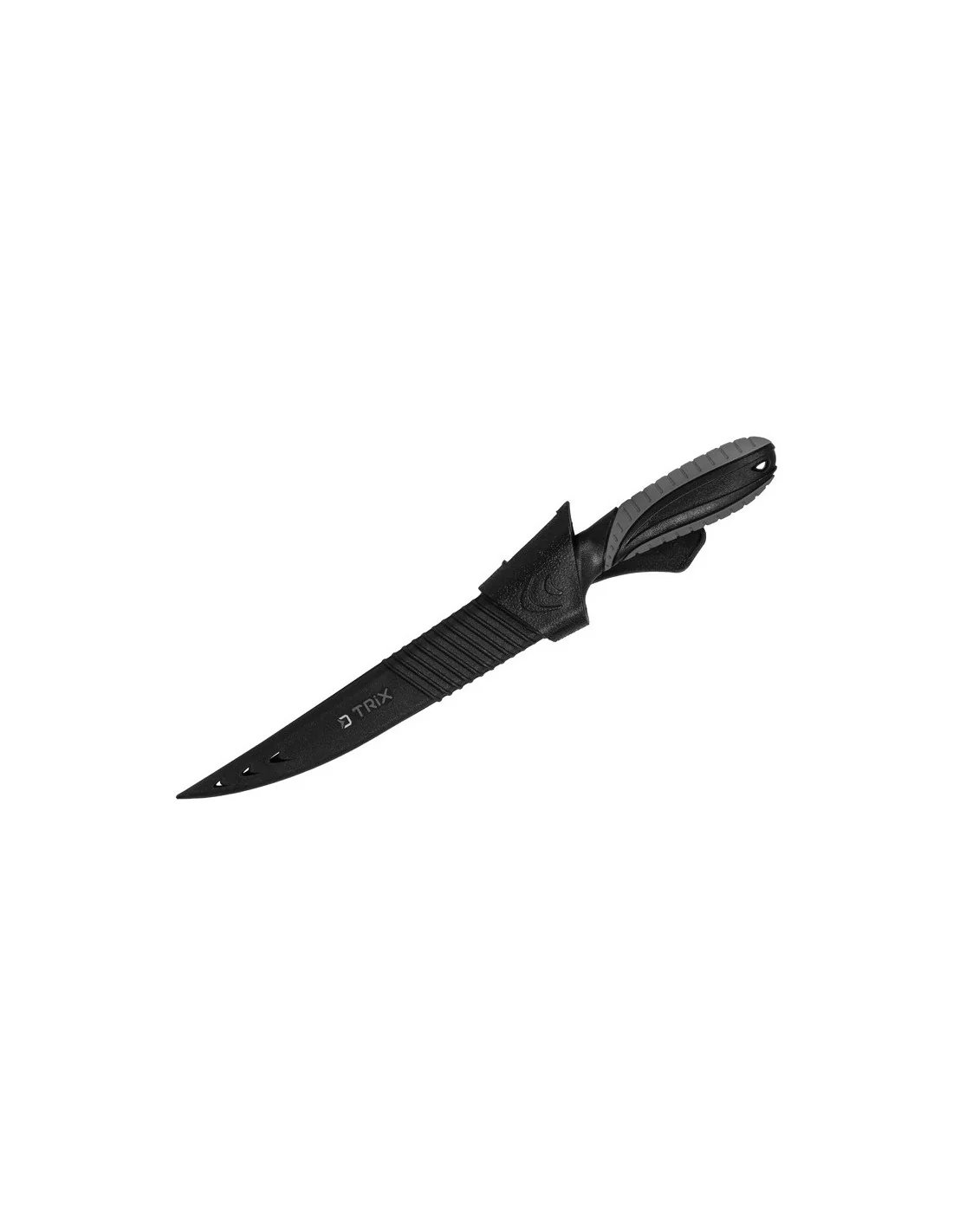Delphin TRIX 17,5cm Filetiermesser Extra Scharf Angelmesser Black Edition mit Kunststoffscheide