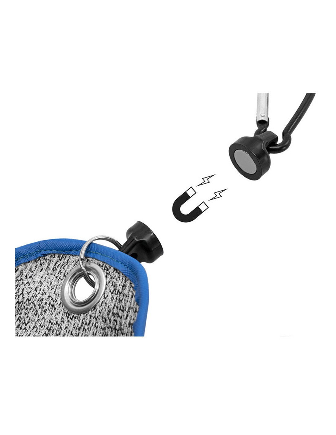 To speed up the use of the glove, the glove is equipped with a magnet. Attach half of the magnet to your pants or to the side of your bag. The other half of the magnet, on the other hand, remains directly on the glove.