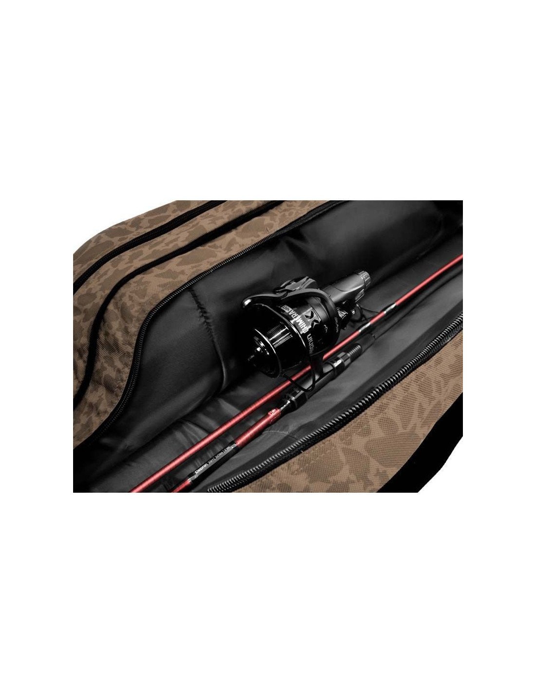 Ein weiteres charakteristisches Merkmal der Area Doublesafe Carpath Rutentasche ist auch ihr "umgekehrtes" Design. Mit anderen Worten wird die Rute mit der Rolle nach oben eingesetzt. Der Hauptvorteil einer solchen Konstruktion besteht darin, dass die Rollen beim Aufstellen des Futterals nicht mit dem Boden in Berührung kommen. So werden etwaige Schäden, welche entstehen könnten, minimiert.