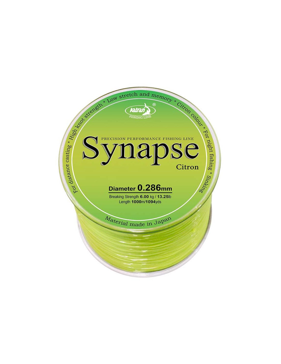 Katran Synapse Citron 0,286 mm 6,00Kg 1000m Fishing Line Angelschnur Gelb Sinkend