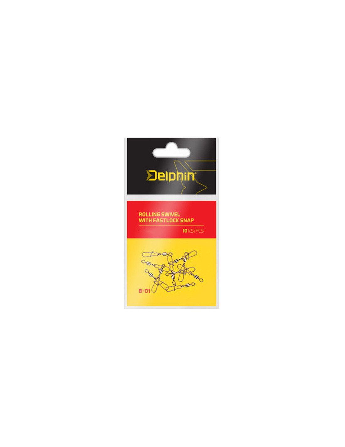 The Rolling Swivel with Fastlock Snap B-01, from Delphin, is a first-class standard swivel with carabiner.