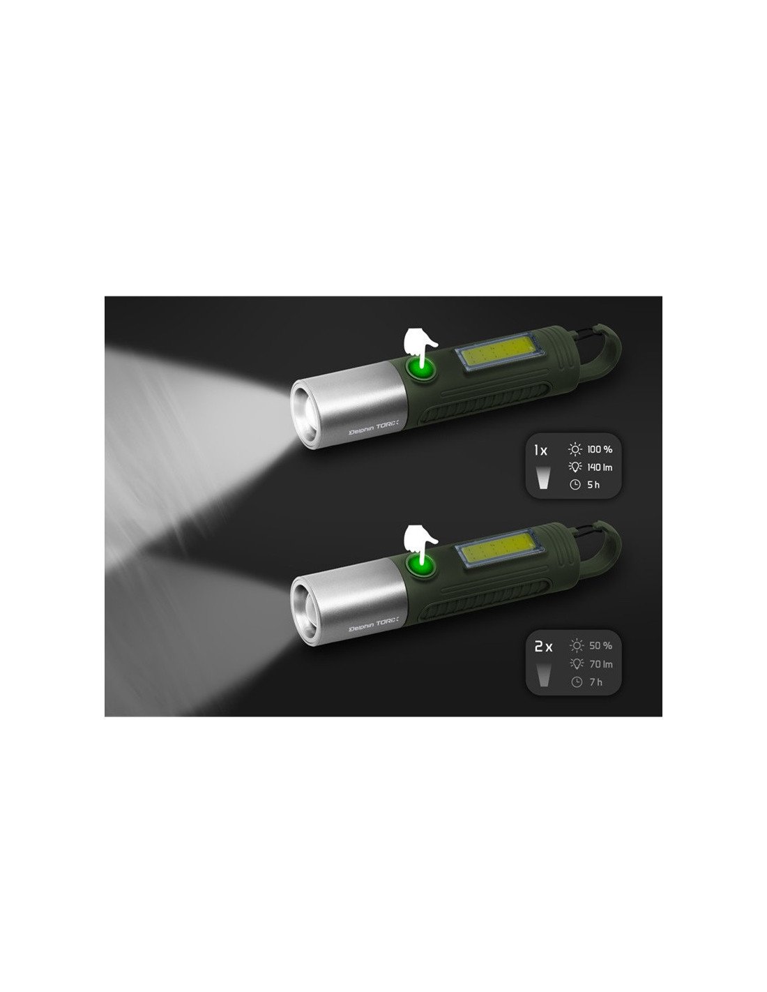 Delphin Torix Campinglampe 3,7 V Weiß- und Grünlicht mit Zoom Funktion